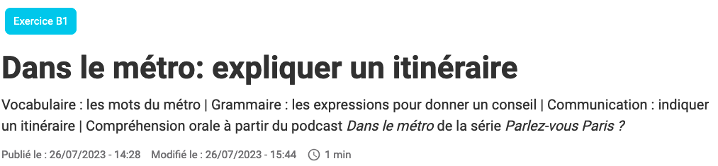 - Thèmes liés à l’actualité « Journal en français facile » ou au mode de vie en France, dont « Parlez vous Paris ? »