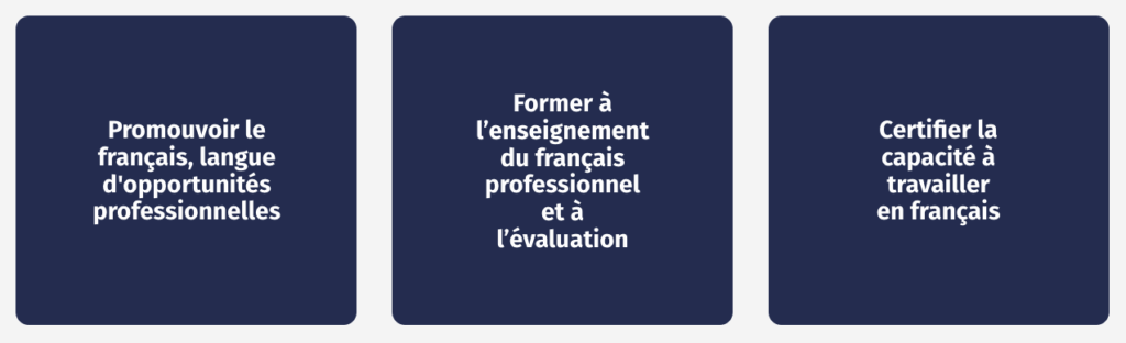 Pionnier de la certification, de l’évaluation et de la formation en français professionnel.