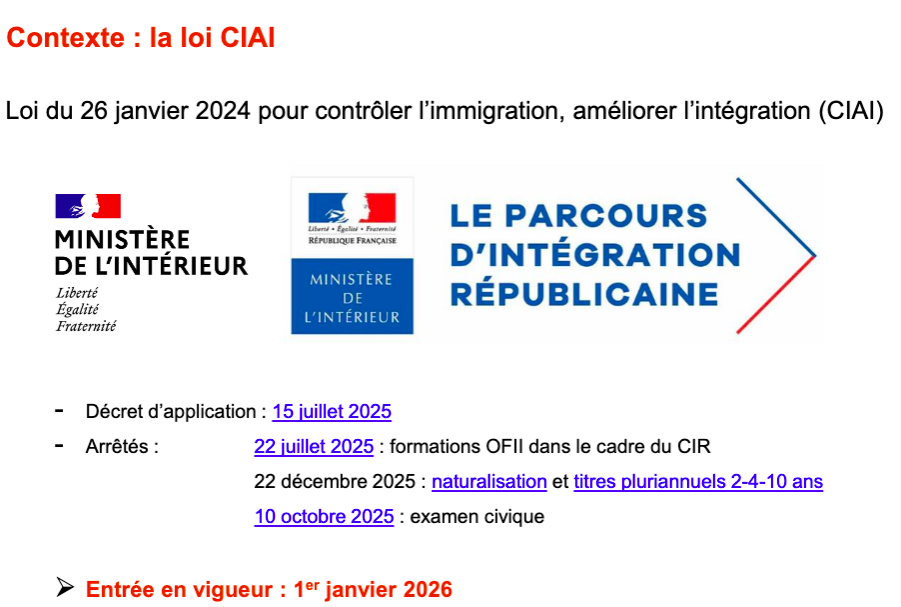 Apprentissage du français et Contrat d'intégration républicaine : Nouvelles dispositions en cours