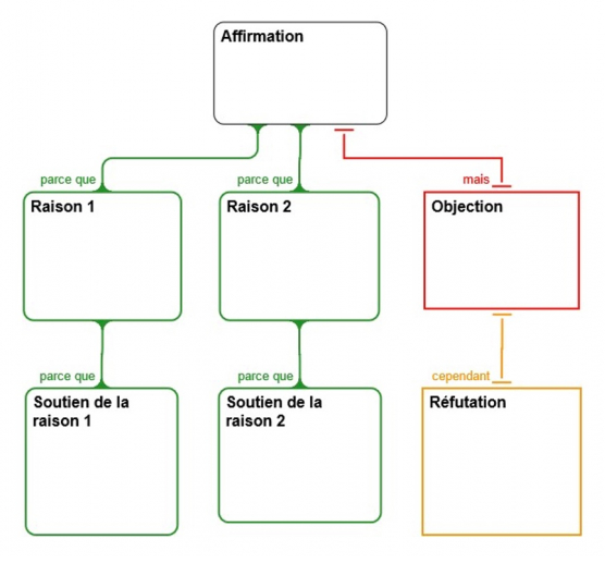 • Le thème choisi par l’émetteur amène une thèse qu’il développe à l’aide d’arguments Raison 1, Raison 2 introduits par ‘parce que’, ‘car’ ….