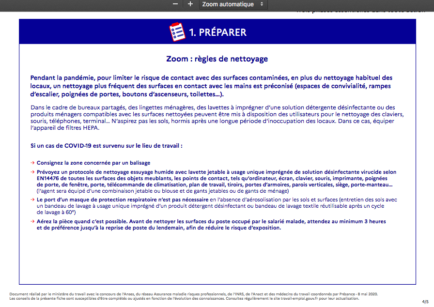 • Nettoyer les points contacts fréquents : poignées, barre, bureaux, ordinateurs .